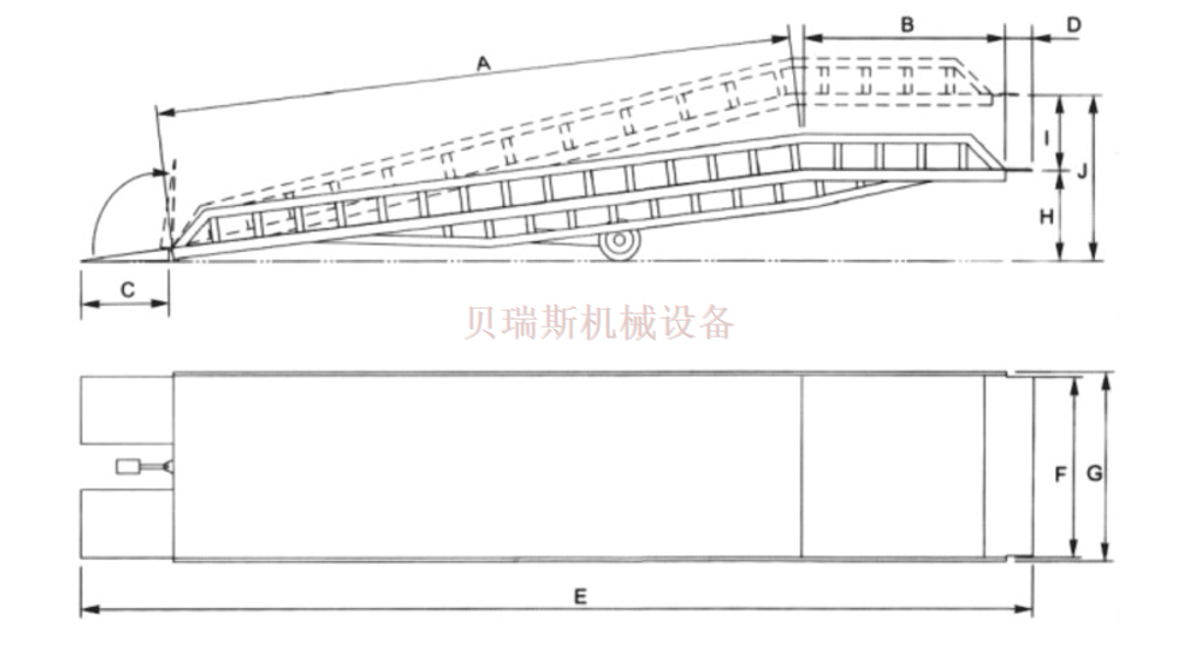 可調節長度的索鏈用于鉤住車輛,使登車橋與卡車發生移位時,登車橋與卡車不會脫離,保障作業安全防止車輛傾覆的高度可調支撐座。支撐于車輛尾部大梁上,防止叉車進入車輛時,重力集中于車輛尾部發生車輛傾覆。能夠充分保障作業安全。